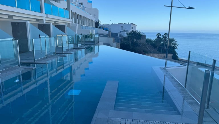 Diseñamos y construimos piscinas de lujo integradas al paisaje canario con ingeniería de alto nivel.
